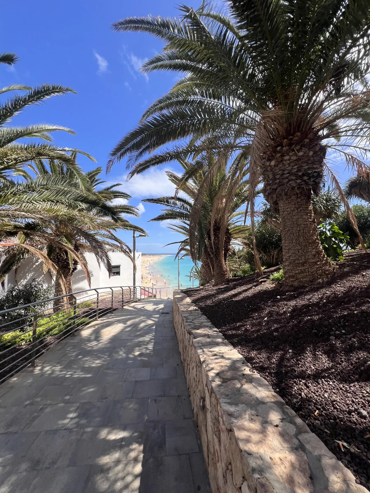 Apartmán se nachází na východním pobřeží Fuerteventury v městě Caleta de Fuste – oblíbeném letovisku, které je jen 10 minut autem z letiště. Díky své poloze na kopci v tichém areálu nabízí ničím nerušený výhled na oceán, přistávající letadla i celé město jako na dlani.