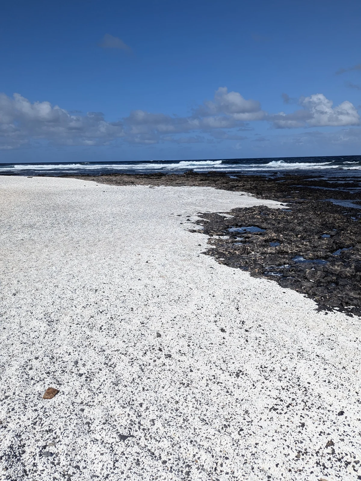 - Glass Beach / Playa del Ámbar (El Cotillo, severozápad): Tato pláž je spíše pro pokročilé. Je známá silným větrem a vlnami, které se lámou na otevřeném moři.