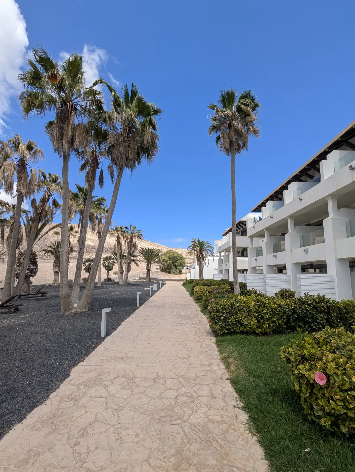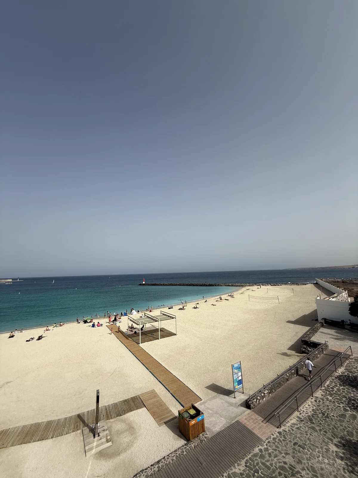 Apartmán se nachází na východním pobřeží Fuerteventury v městě Caleta de Fuste – oblíbeném letovisku, které je jen 10 minut autem z letiště. Díky své poloze na kopci v tichém areálu nabízí ničím nerušený výhled na oceán, přistávající letadla i celé město jako na dlani.